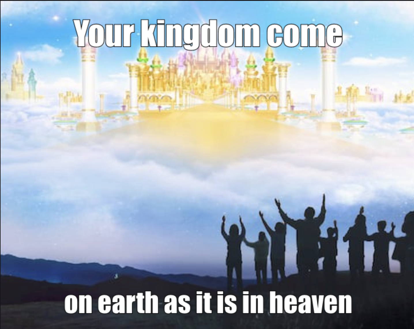 All of that creation frame, ordered correctly, distributed through hearts that welcome him, becomes the kingdom. The kingdom comes in each of these realms; the kingdoms of the world become the kingdom of God; transformed through His people.